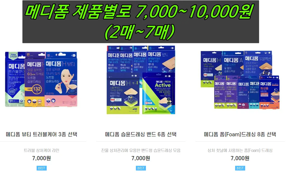 메디폼 가격은 9,000원(7~8매,혼합형)이지만,